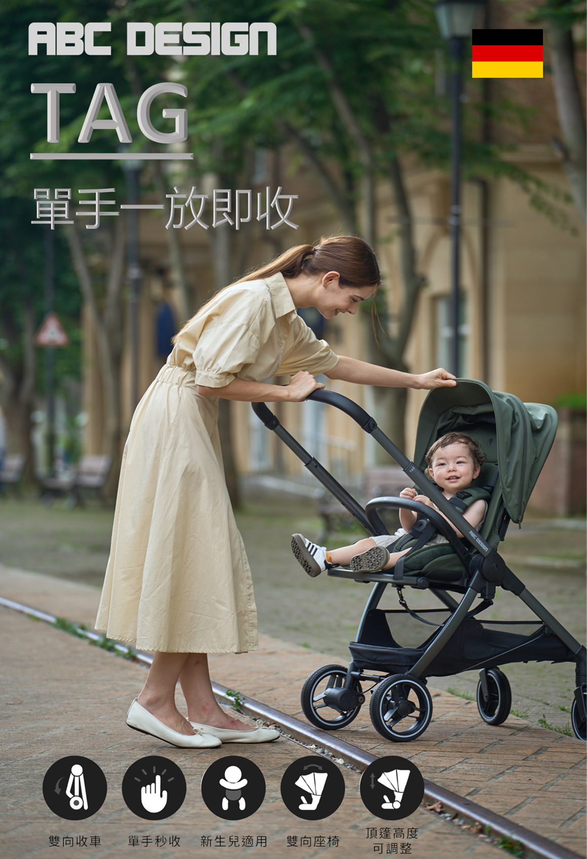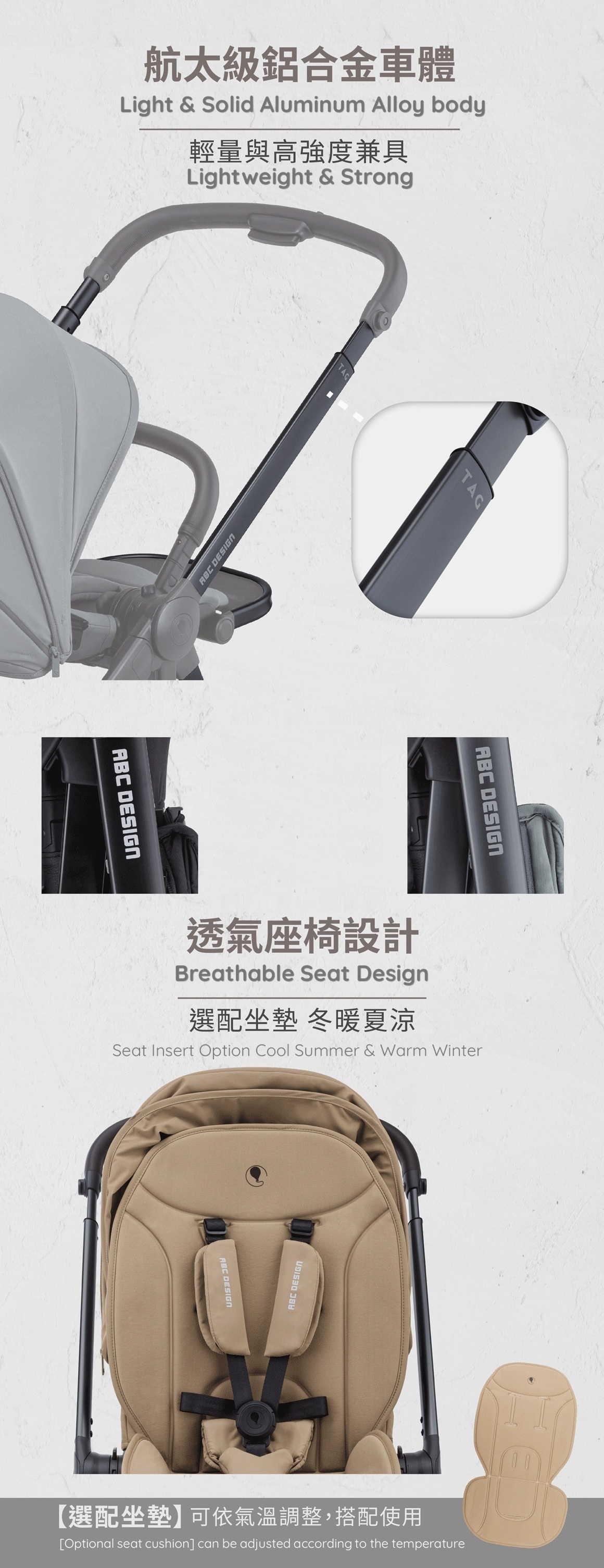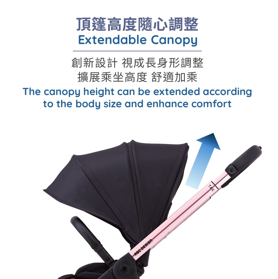 Four-stage push handle adjustment: ergonomic, suitable for parents of different heights.