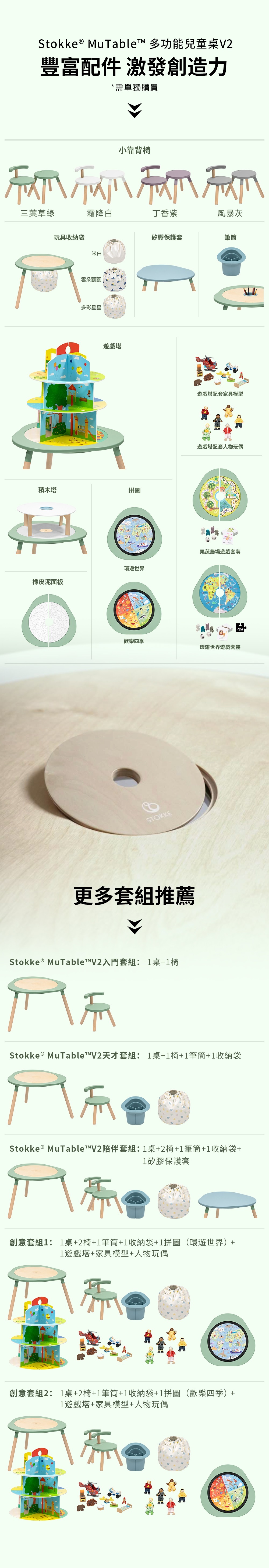 The kid’s table to play, learn & grow! Harness the power of early learning with a kid’s play table packed with endless possibilities. The Stokke® MuTable™ concept stimulates the senses, inviting children to use their imagination. Colorful, tactile play and activity boards set the scene for everyday adventures. Your little one can be a superhero, save the world, or create their own.  Featuring sturdy wood with softly curved edges, Stokke® MuTable™ Play Table offers activities for each stage of development, from baby to toddler, pre-school kids and beyond. The table comes with 3 engaging, double-sided activity boards and inspires hours of both independent and social play. Did we mention, our unique play table comes with leg extensions, so you can take play to new levels and adjust it to your child's growing size. Made with high quality materials including natural wood, you can use your play table for years. Optional accessories make sure your little one will always have something new to inspire them. A kids table for fun and engaging activities for creative play & learning Encourages babies and toddlers to learn through play which is essential for cognitive, emotional and social development Suitable for kids from 18 months to 8 years and beyond Table transforms as fast as your children's imagination Colorful, tactile play and activity boards for developing fine motor skills Inspires hours of both independent and social play, great for siblings and friends to join in the fun Play table includes 3 double-sided boards for hours of activities: wooden cover & blackboard, landscape board, bricks board Available in interior-friendly on-trend colors, mix and match as you wish Safe with softly curved edges and sturdy wooden legs Leg extensions included to match the needs of your growing toddler Super-easy tool-free assembly - assembles in ca. 3 minute Plenty of accessories for each stage of development (sold separately) - easy to use, just swap and enjoy without tools Made with high quality, natural wood Tested for safety Free from harmful substances 3-year warranty