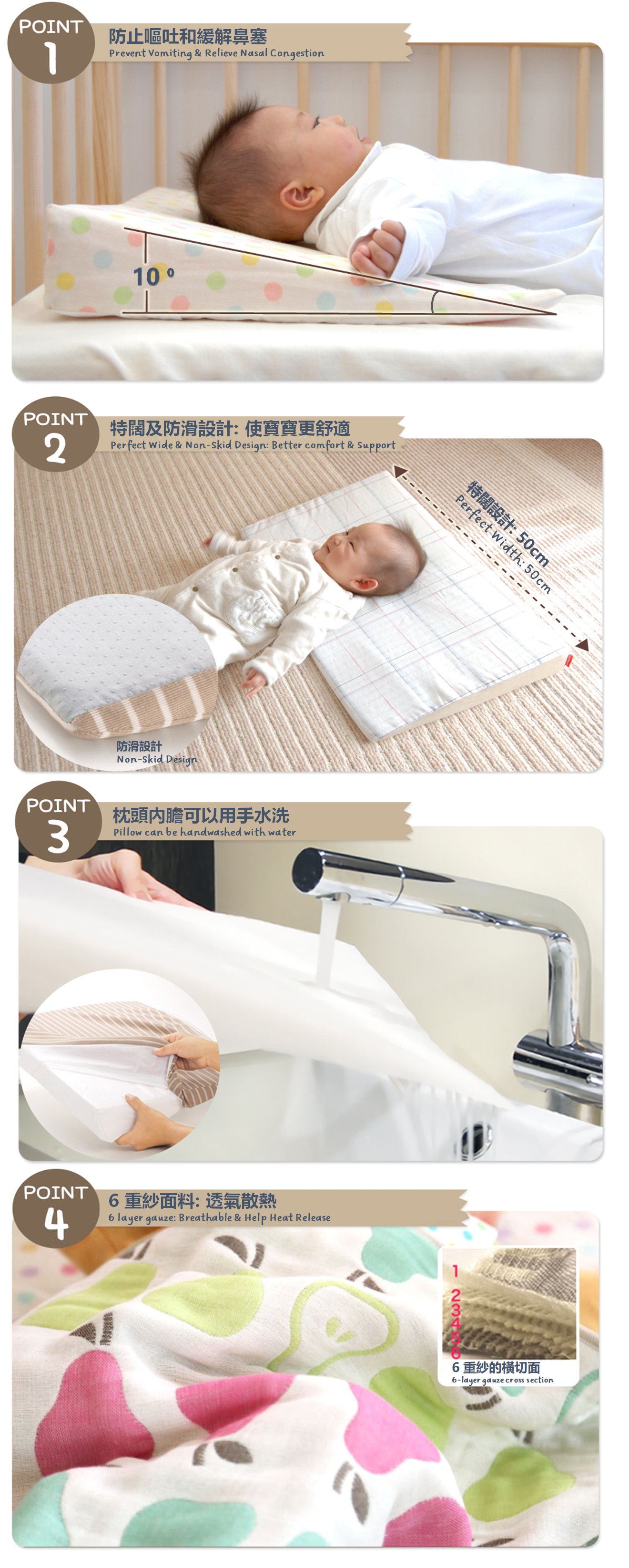 A pillow tilted at 10 degrees to prevent vomiting and relieve nasal congestion.