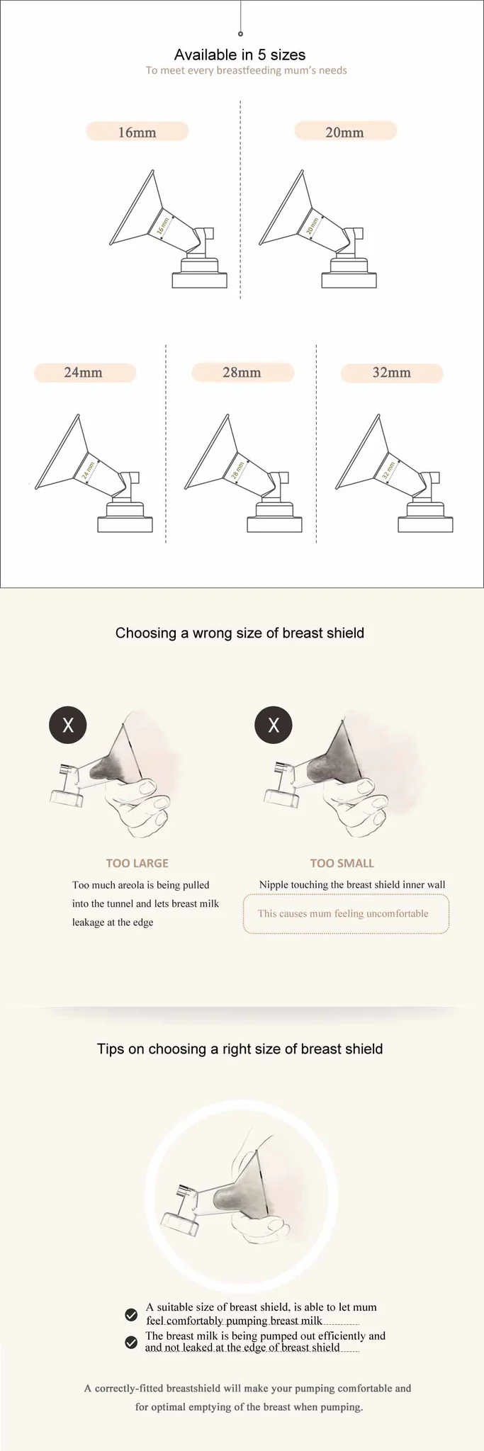 Available in five sizes: 16mm / 20mm / 24mm / 28mm / 32mm, to meet evey mum's needs.