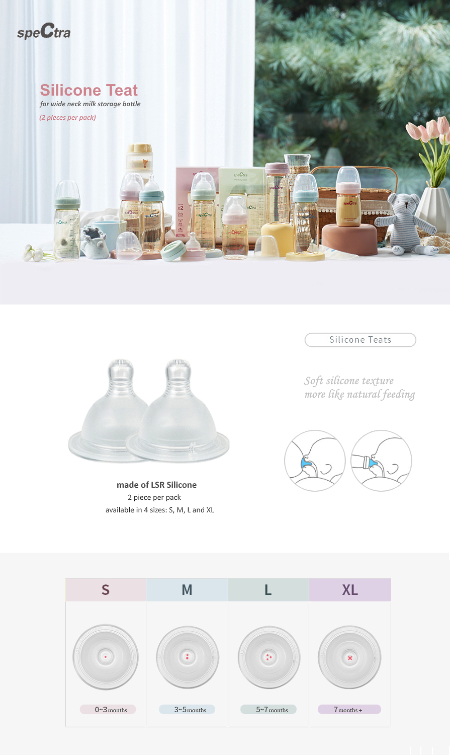 This Silicone Teat is compatible with all Spectra Wide Neck milk storage bottles. Made of soft and safe LSR silicone material, more like natual feeding.