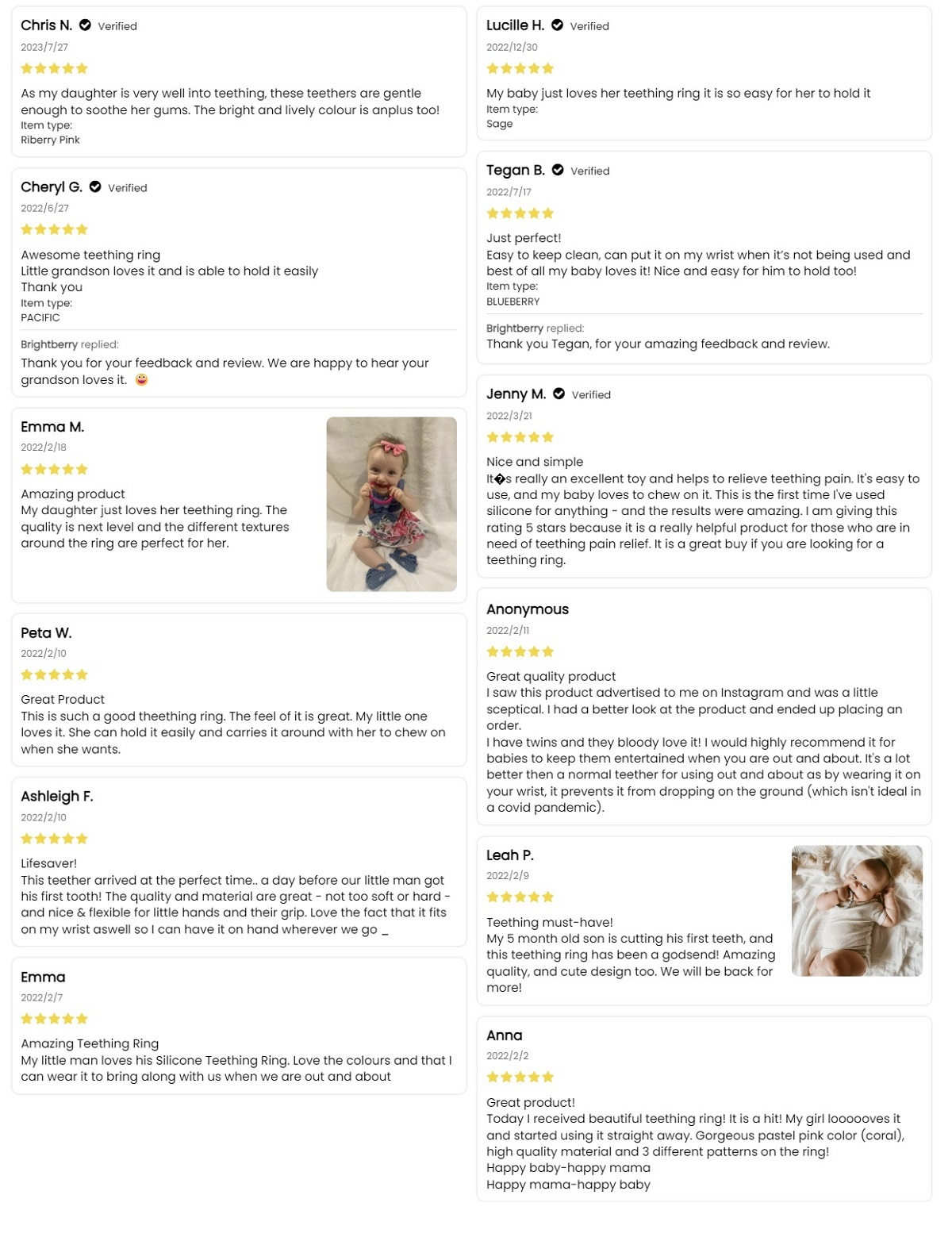 Brightberry 彩色超柔軟矽膠牙膠環非常適合幫助出牙寶寶舒緩出牙時的牙齦疼痛。