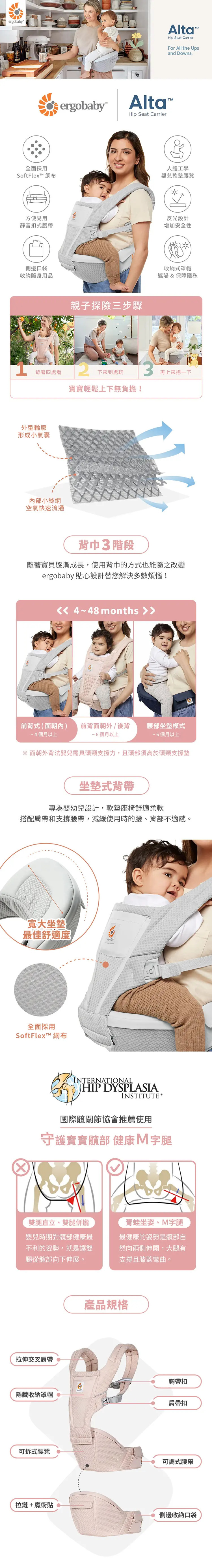- 全面採用 SoftFlex™ 透氣網布,提供嬰兒坐墊式背帶的頂級通風效果