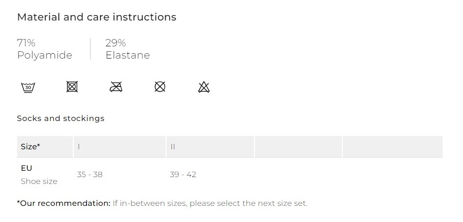 These knee-high socks of the FALKE Travel & Comfort range ensure an active stimulation and energise the legs thanks to the compression effect. Continuously recharge your batteries under extreme pressure when sitting, standing and walking, as well as on longer flights. Prevent swollen, heavy legs, as well as premature shape loss, and feel fit and strengthened throughout the day. Great wearing comfort and unrestricted freedom of movement. A fine matte mesh structure for a naturally beautiful look. Please don't put lotion on your legs. 30 den appearance. Shaping effect
