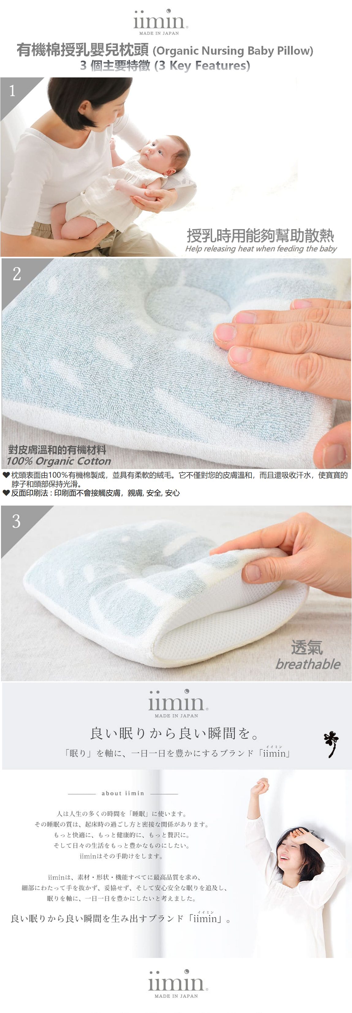 餵哺寶寶時, 寶寶經常在懷裡睡著。當移動寶寶到床上時, 往往都會將寶寶弄醒, 所以創造了 iimin授乳枕頭.