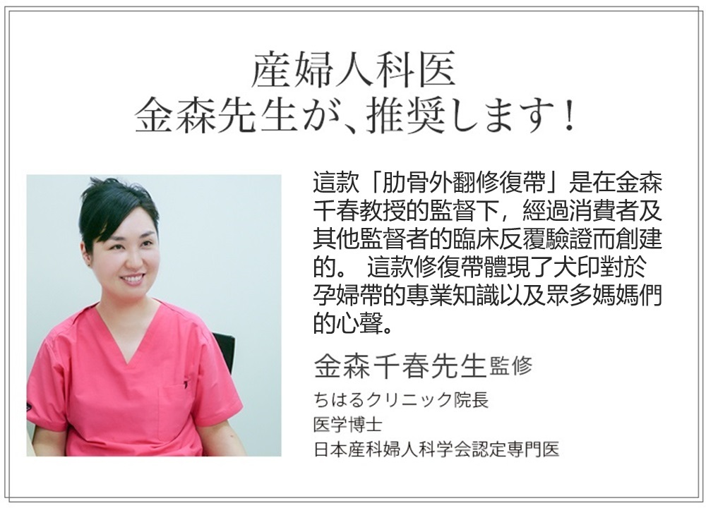 犬印本鋪以肋骨為中心,研發出了一條新的肋骨外翻修復帶,可以收緊因懷孕而突出的肋骨,並支撐上身廷直,塑造美麗的身體線條,改善姿勢, 產後一個月左右開始使用。