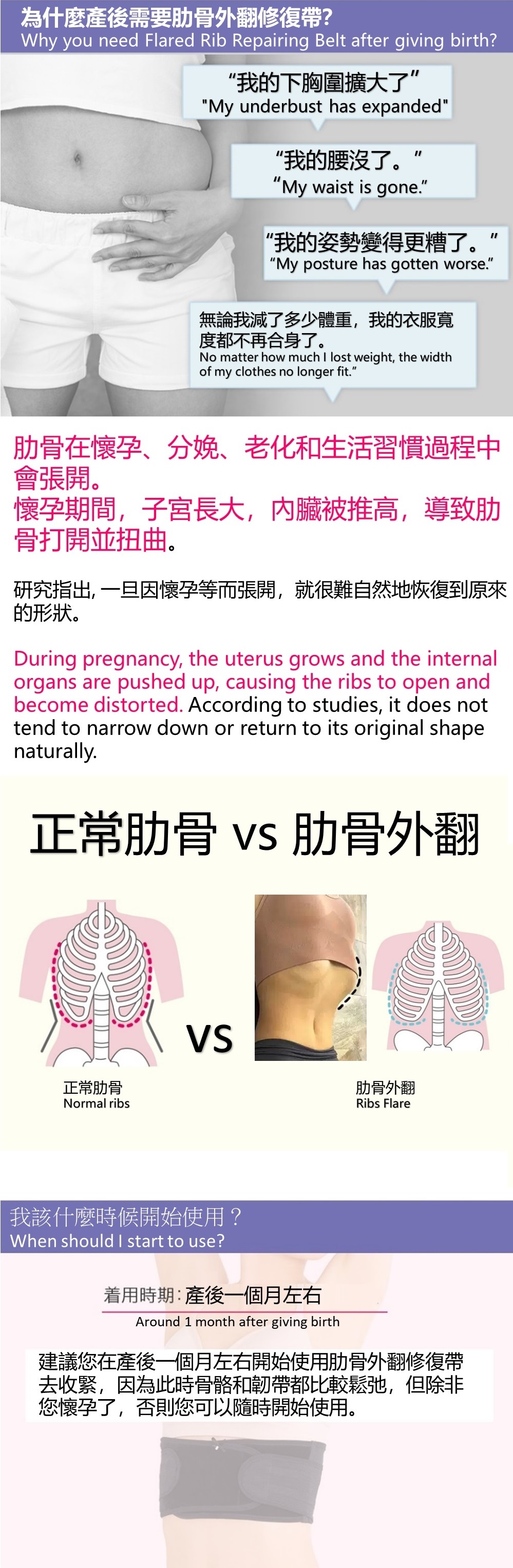 懷孕期間,子宮長大,內臟被推高,導致肋骨打開並扭曲。
