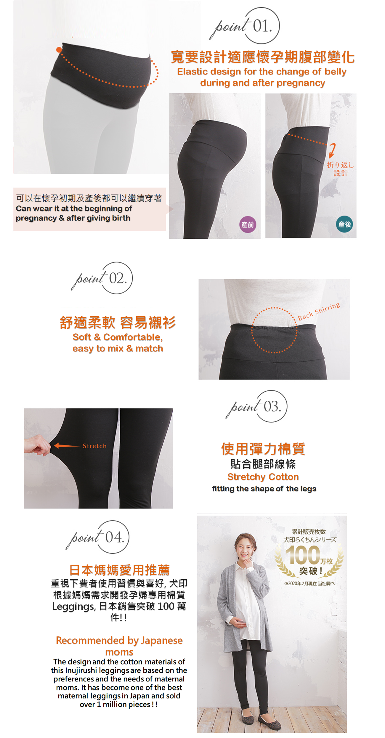 孕產貼腿褲使用彈力棉質裁剪材質