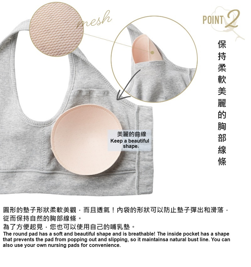 ・不會感覺太緊,因此可以用作夜間胸罩或孕吐時使用。