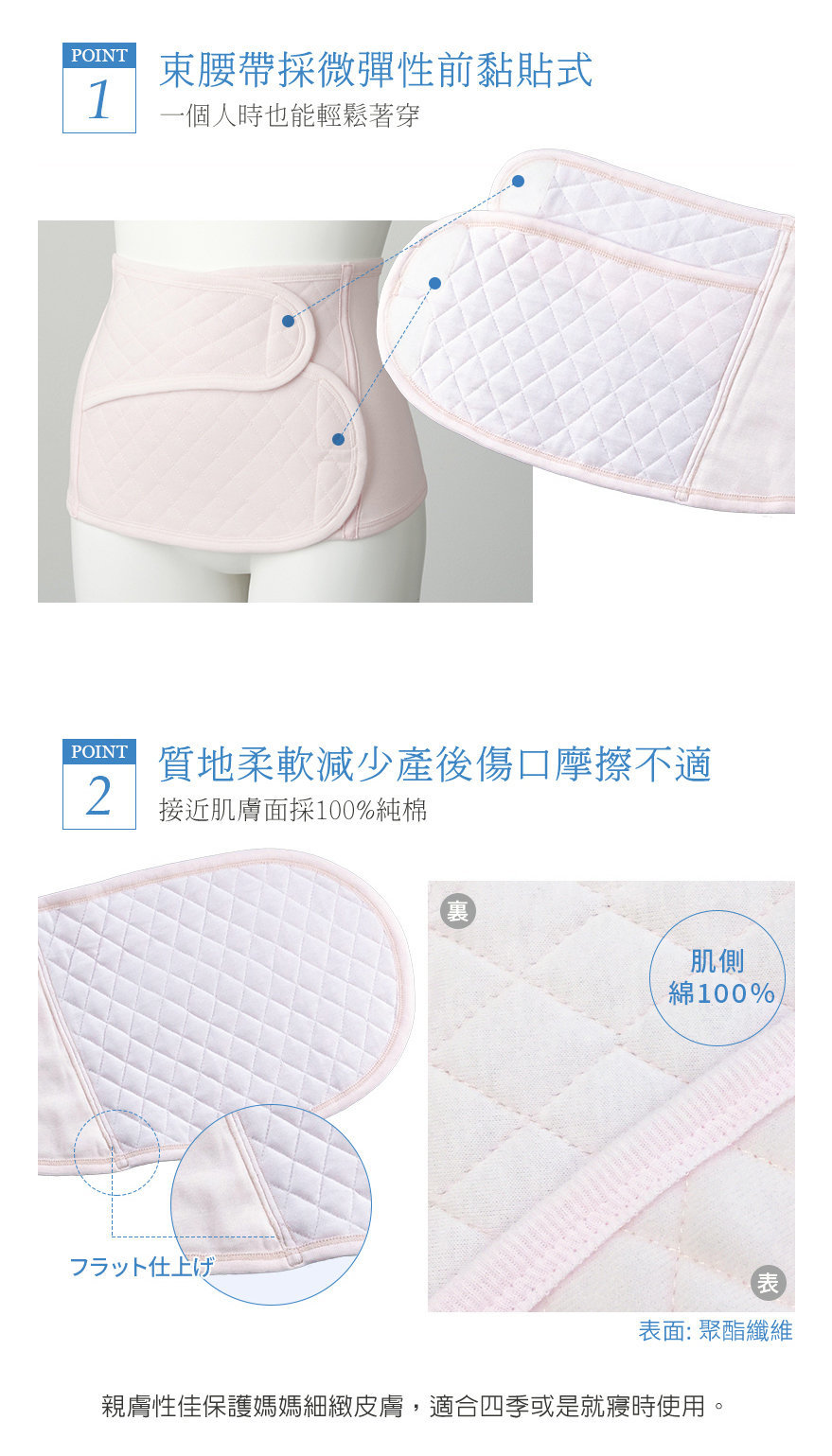 *束腰帶採微彈性前黏貼式,一個人時也能輕鬆著穿