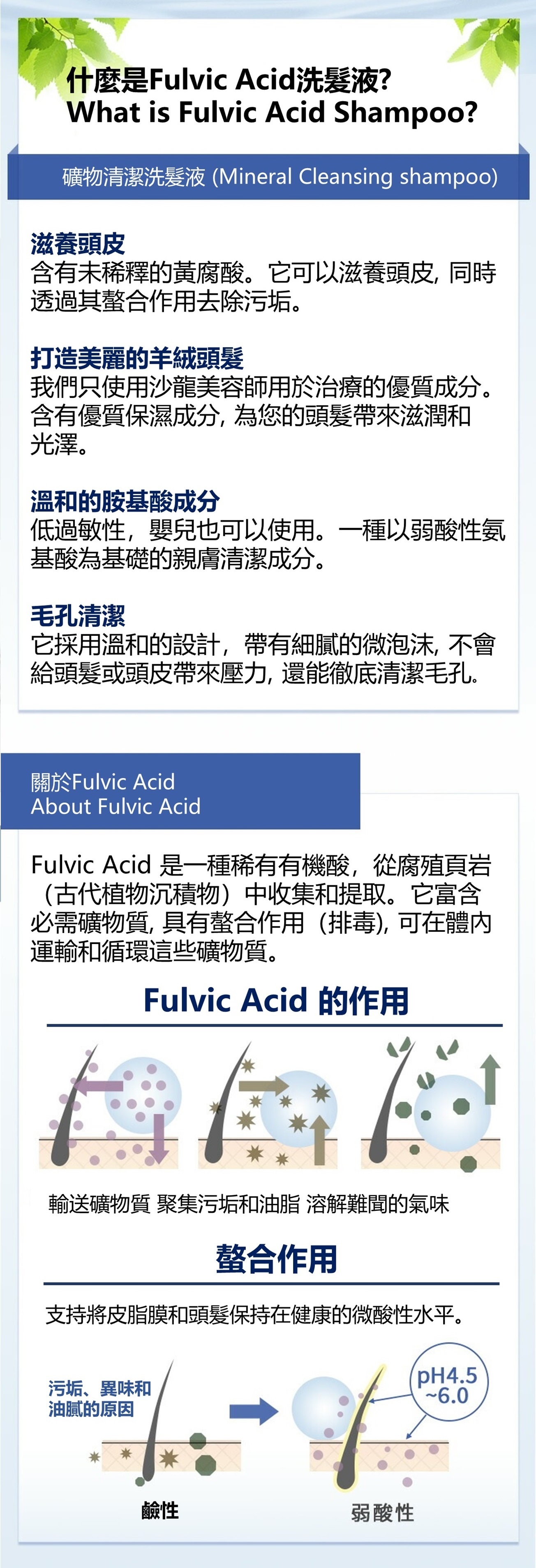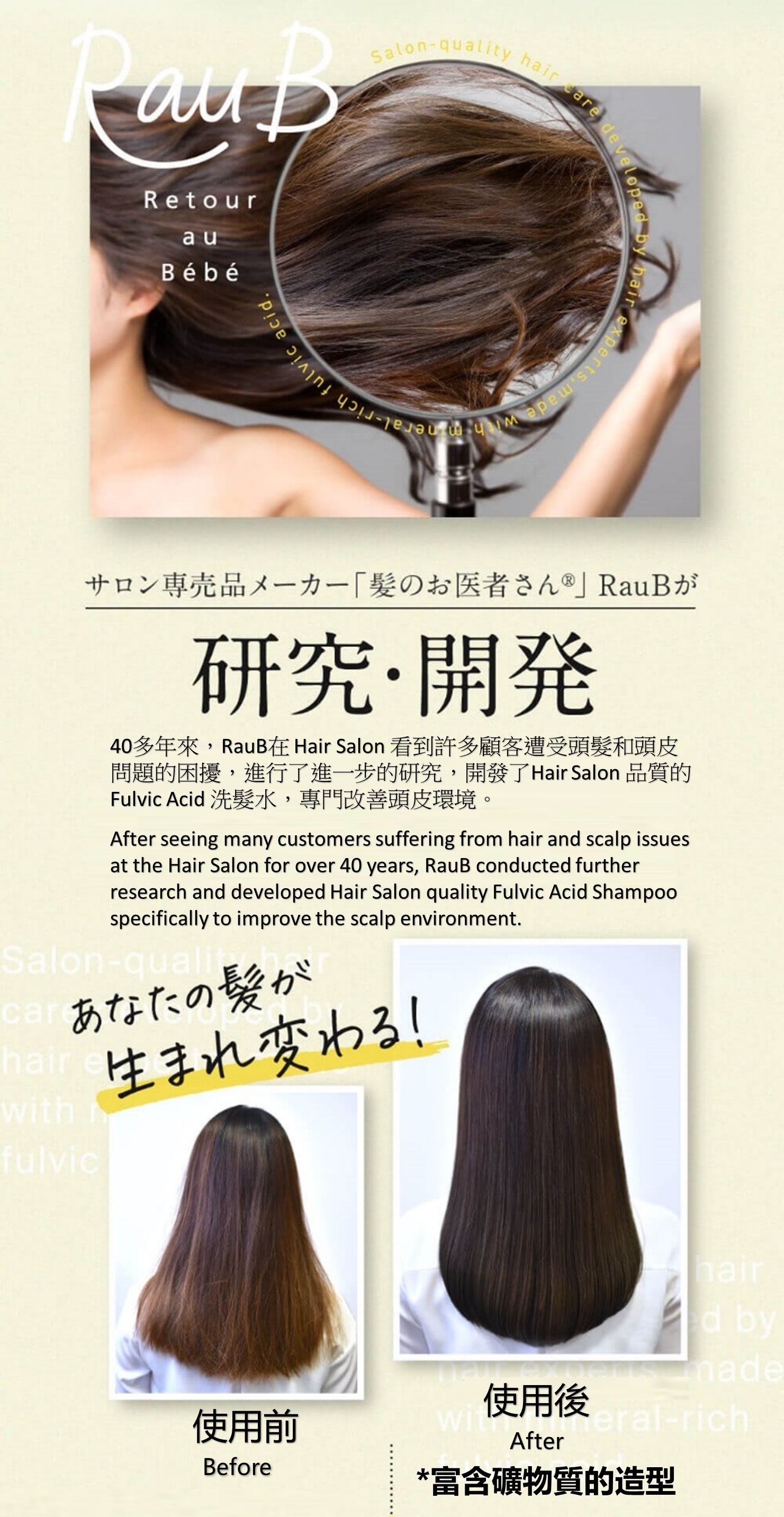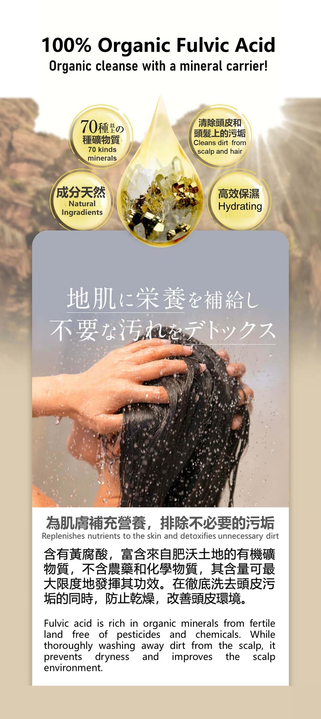 Inujirushi x RauB 防脫髮·育髮·礦物質保濕洗髮水 含有富裡酸(Fulvic Acid) 以及70多種礦物質天然成分: