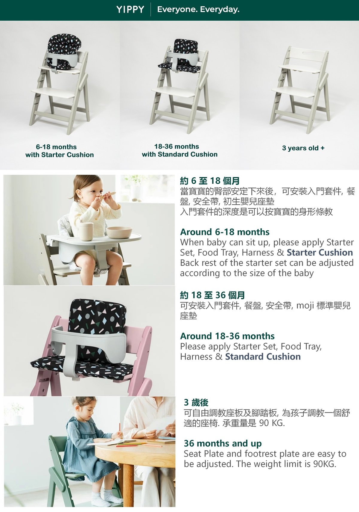 僅適用於搭配moji YIPPY 成長椅 Starter Set 一起使用