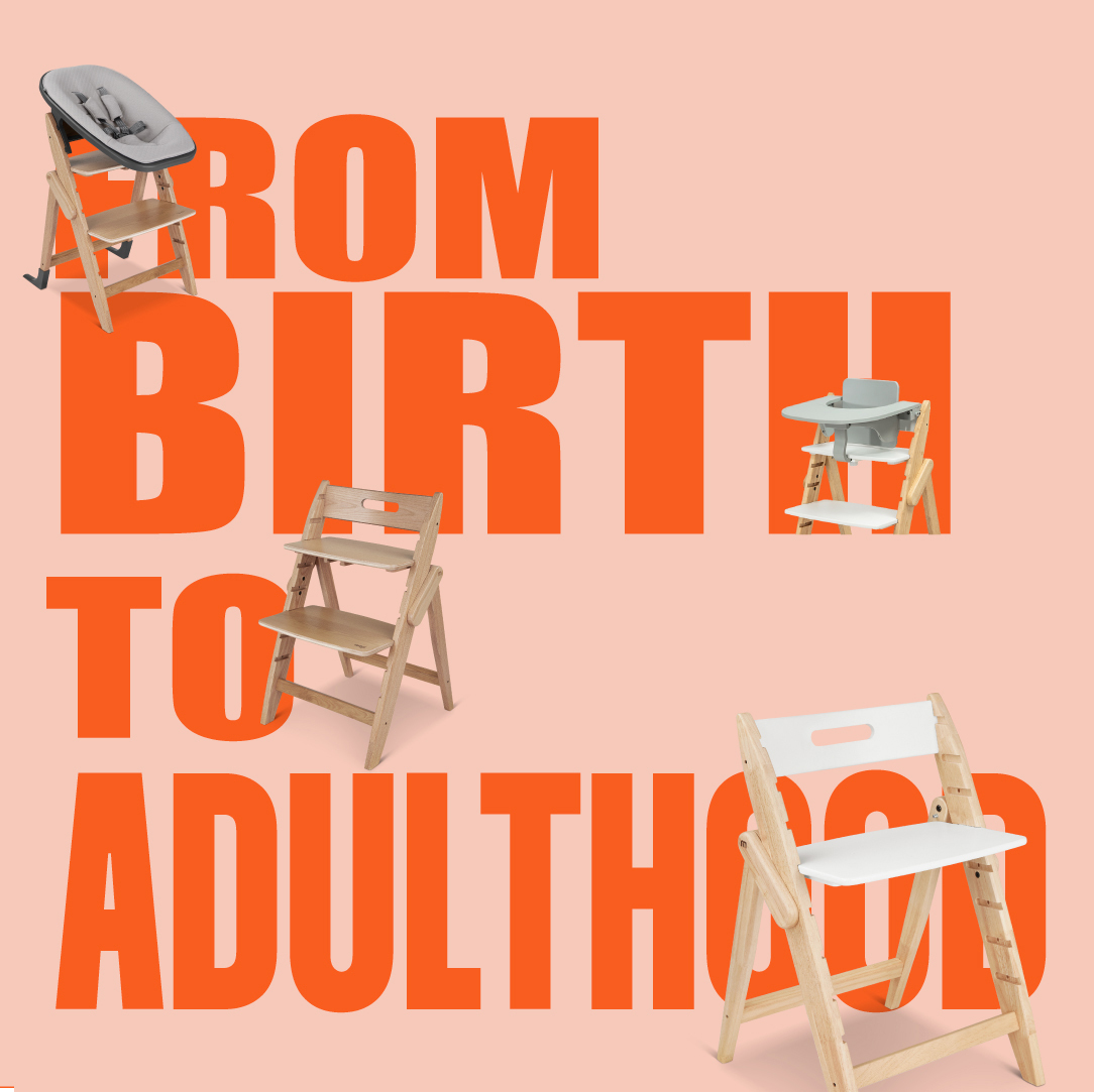 - 可以全家人共享的 Designer Chair/ 成長椅, 帶有附件可供初生嬰兒使用。