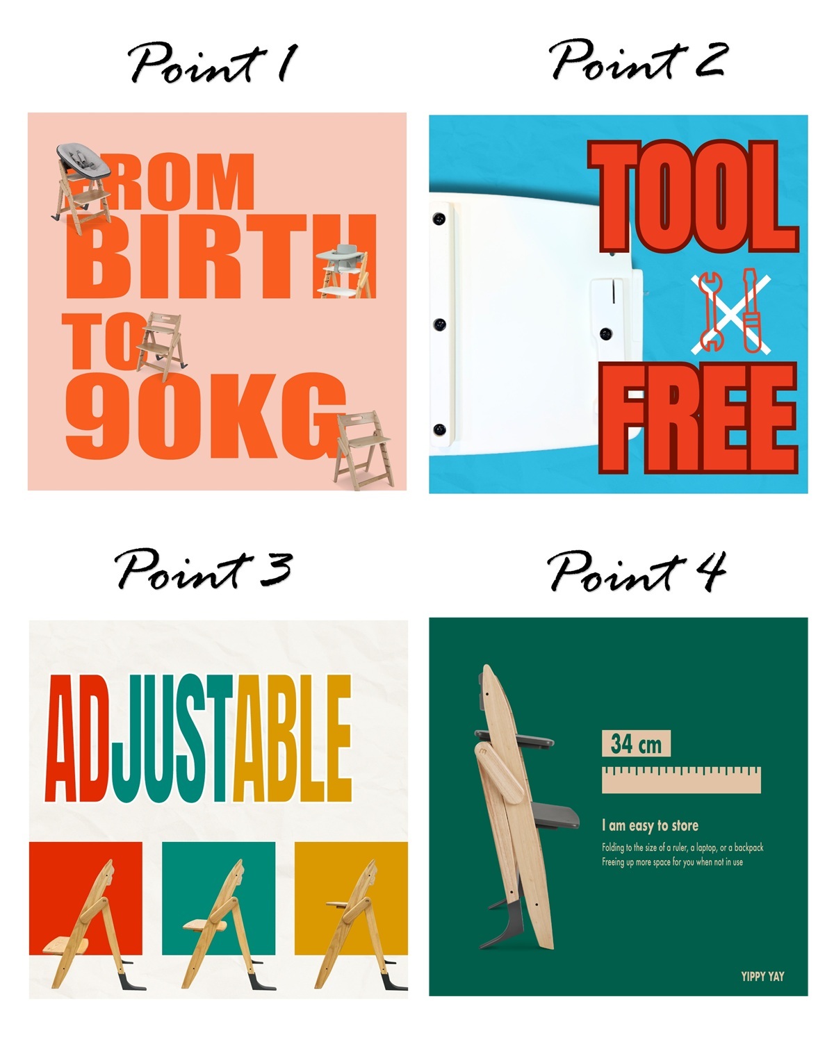 - 可以全家人共享的 Designer Chair/ 成長椅, 帶有附件可供初生嬰兒使用。