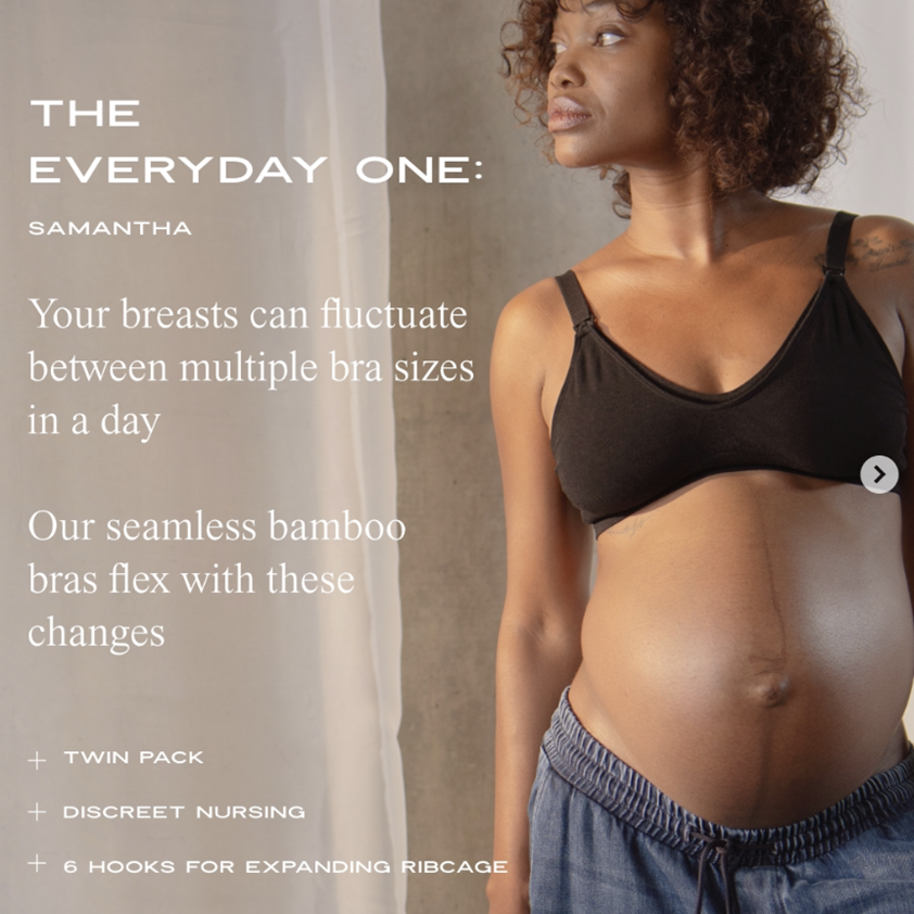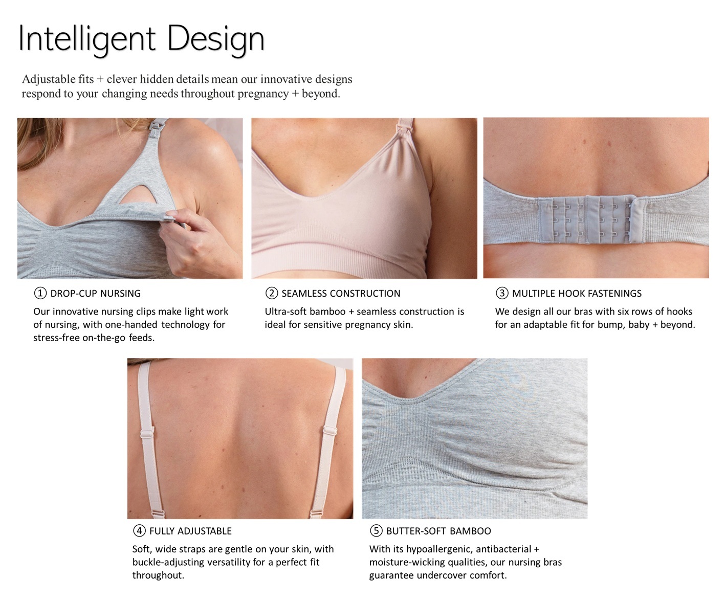 This essential twin pack in classic black + white offers hypoallergenic + antibacterial benefits perfect for sensitive skin. The fully adjustable design accommodates natural daily fluctuations while providing excellent shape + support, making these bras ideal basics for before, during + after pregnancy.