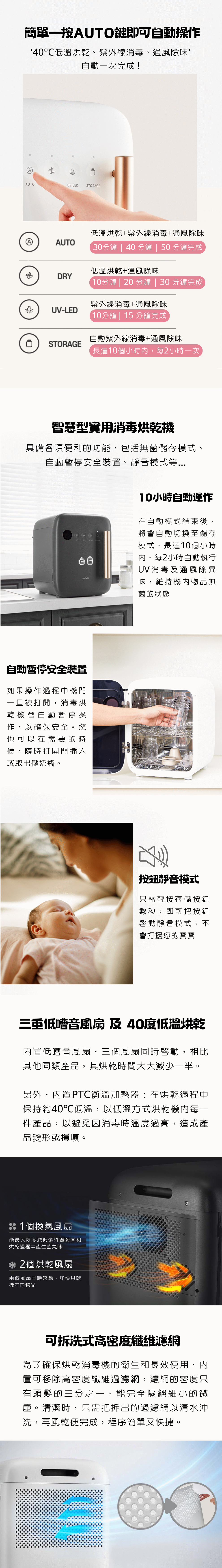 烘乾/殺菌方法 : 內置PTC低溫感應器/UV-LED紫外線燈