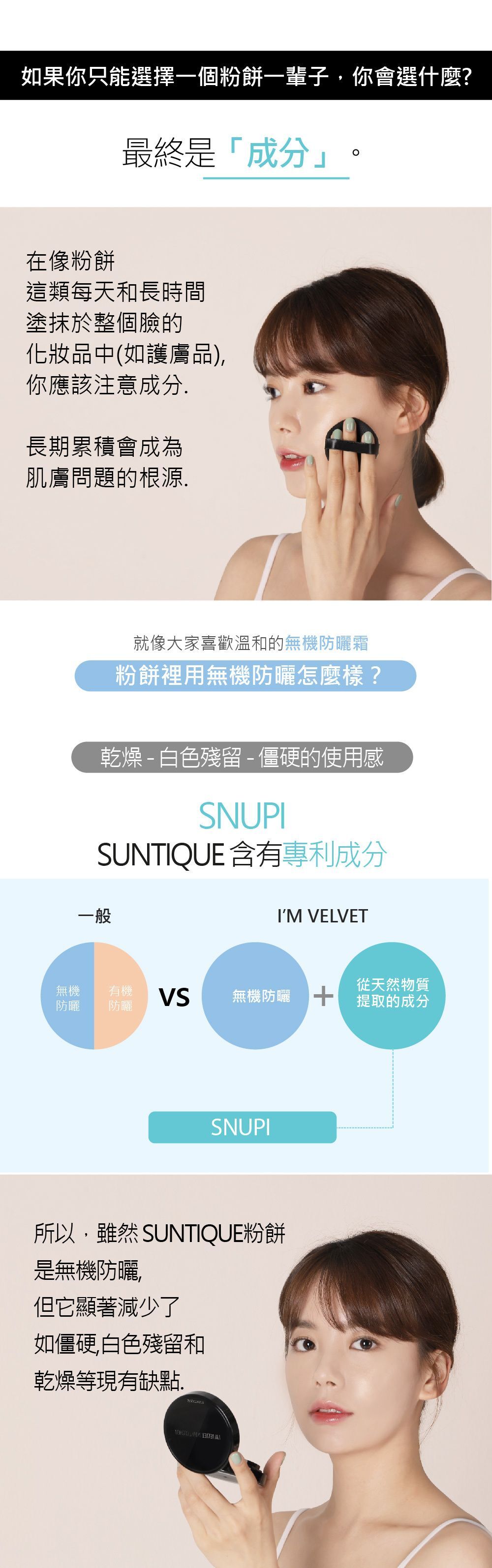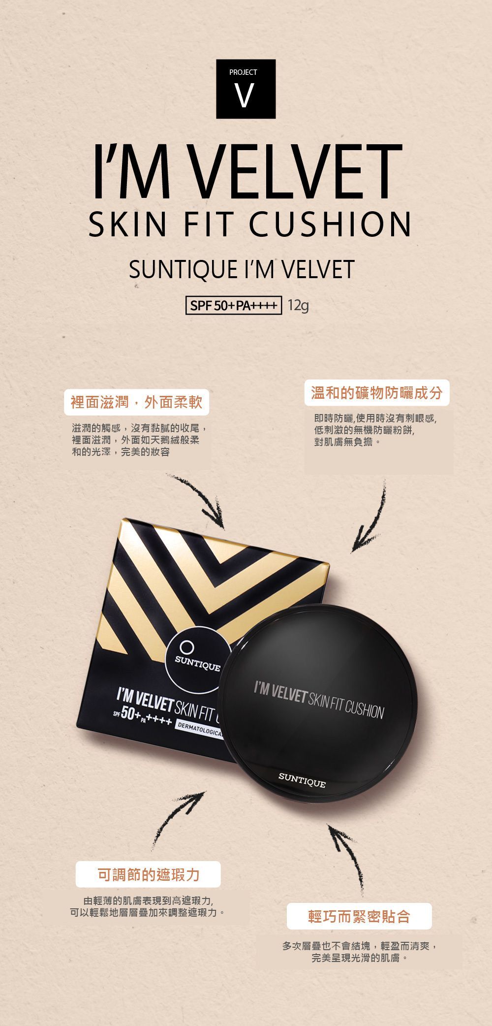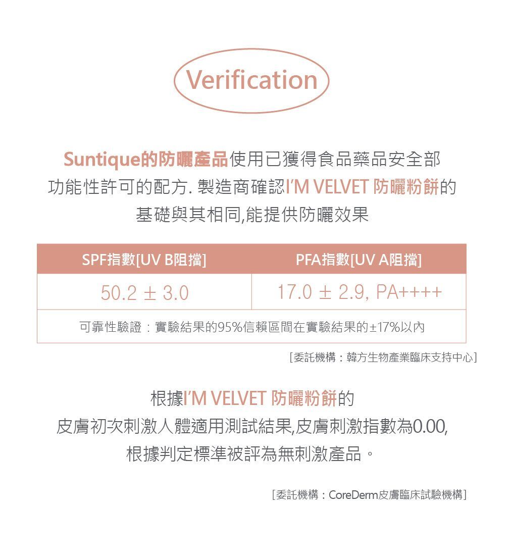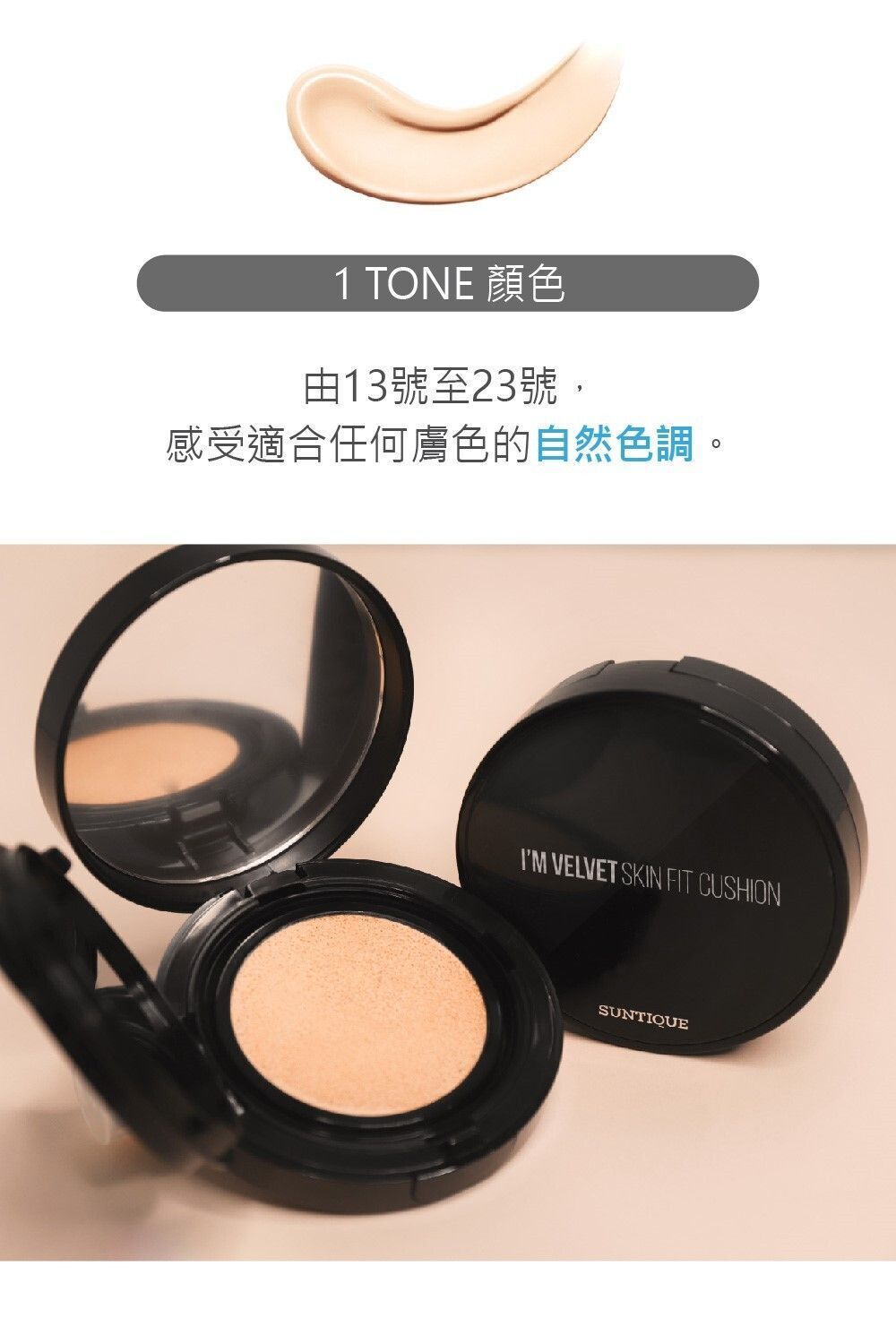 Suntique I'M VELVET 防曬粉餅,同時提供自然的膚色修正和強效的防曬效果。