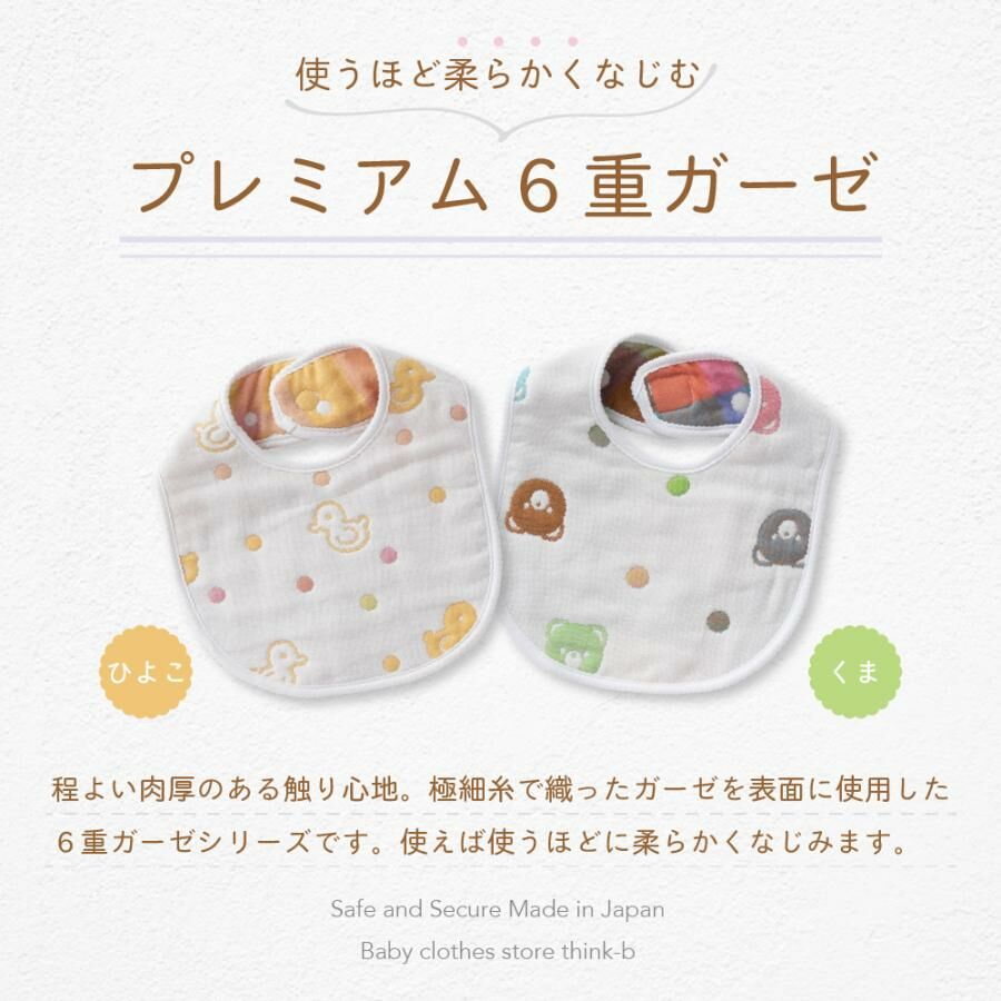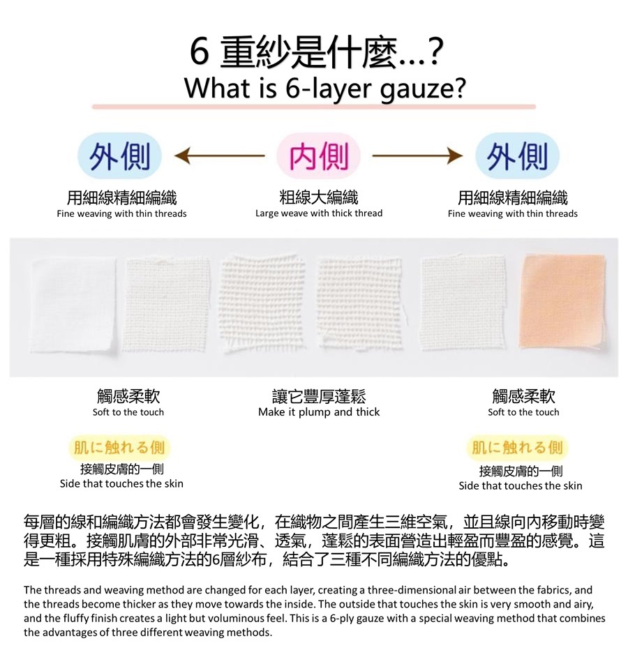 方便穿脫的魔術貼式圍兜,使用內部富含空氣的柔軟六層紗質料製成, 柔軟, 吸水力強!